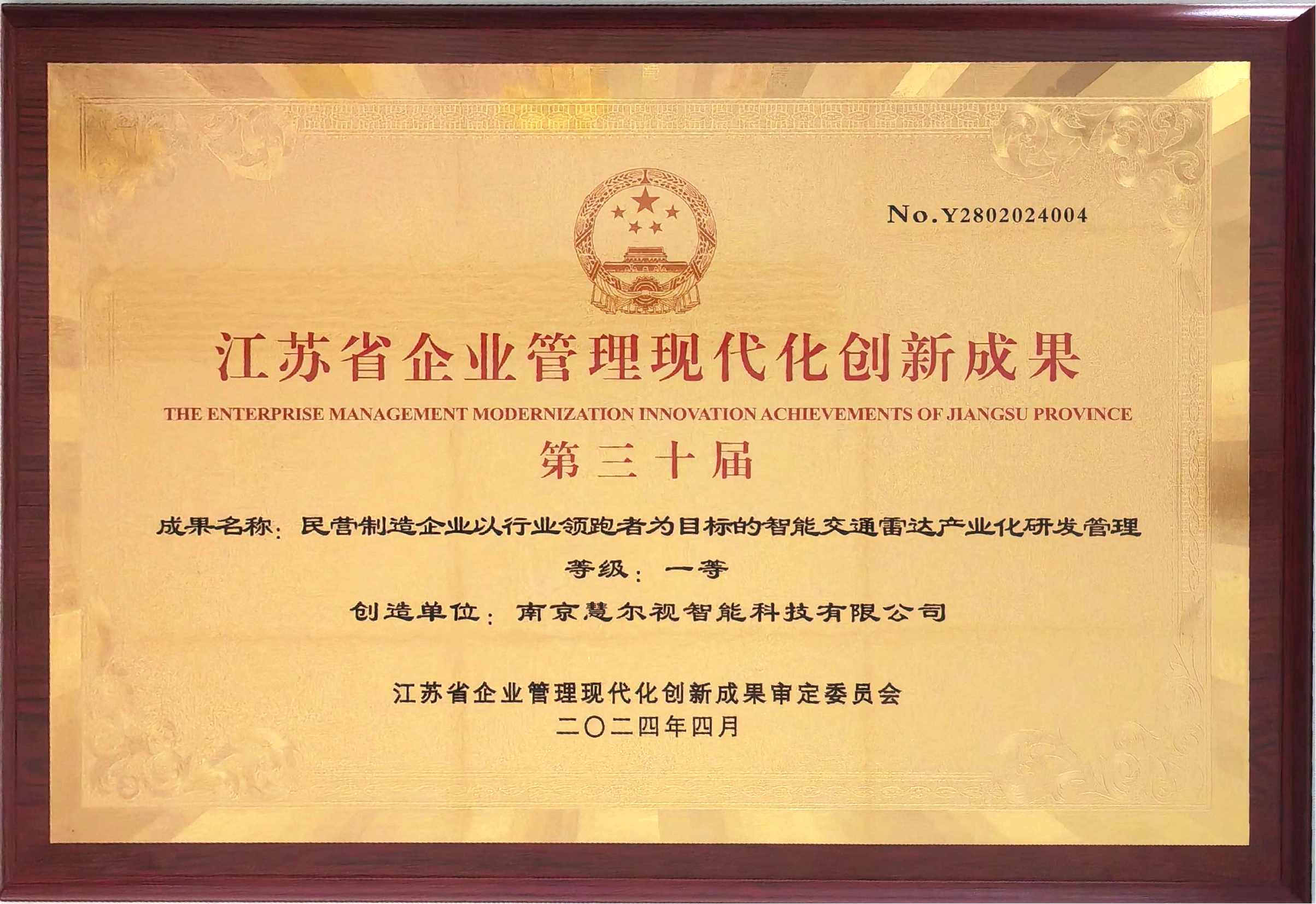 南宮NG受邀參加此次創(chuàng)新成果發(fā)布會,南宮NG28創(chuàng)新成果《民營制造企業(yè)以行業(yè)領跑者為目標的智能交通雷達產業(yè)化研發(fā)管理 》榮獲第三十屆江蘇省企業(yè)管理現代化創(chuàng)新成果一等獎。